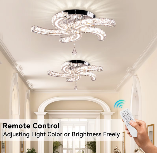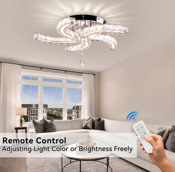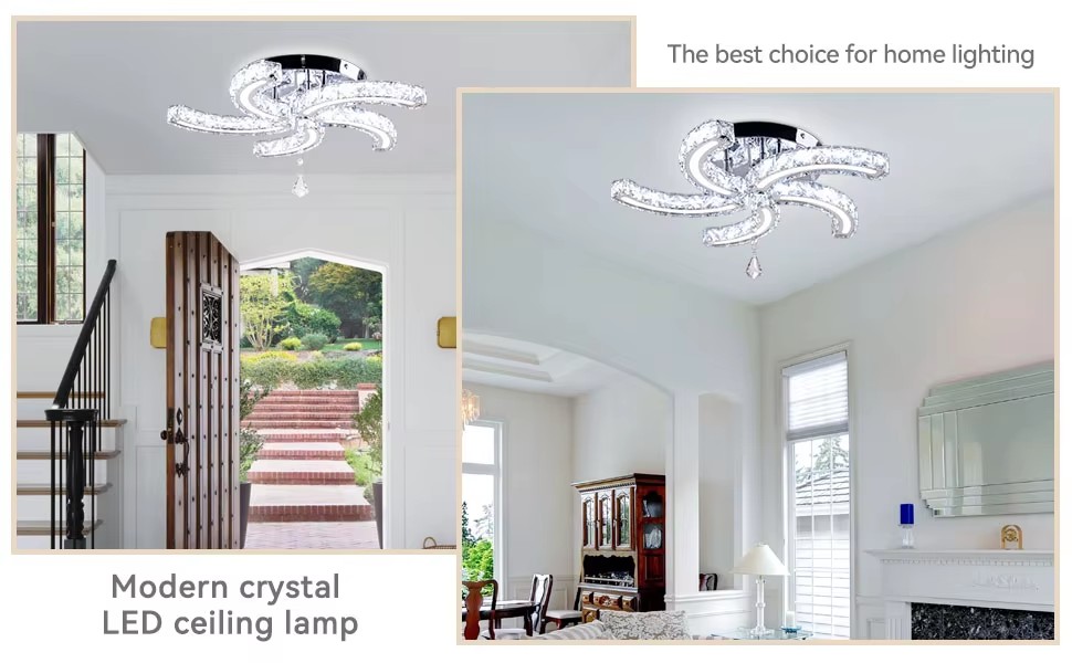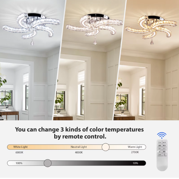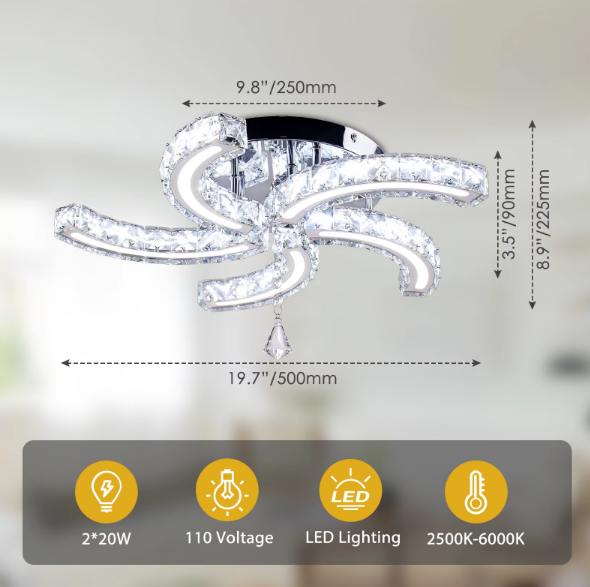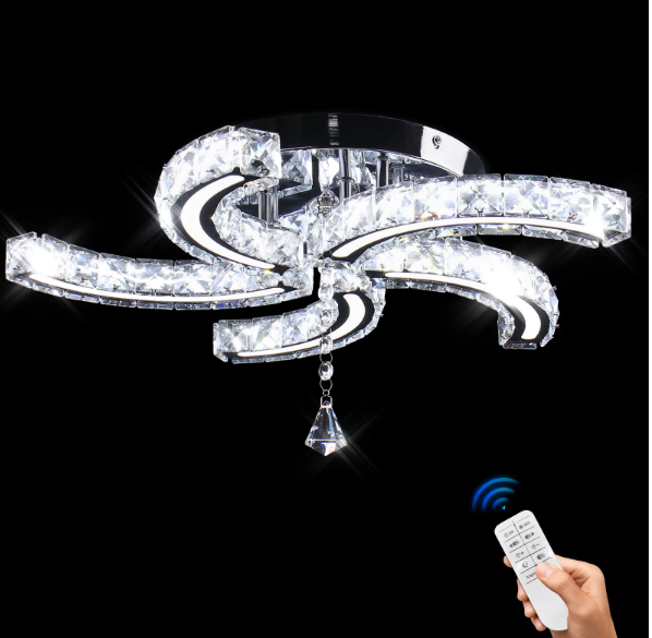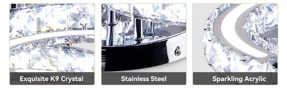 Restaurant Modern LED Chandelier Pendant Light with Crystal Cold White Light for Kitchen Island(2700,6000K,Switch Control)